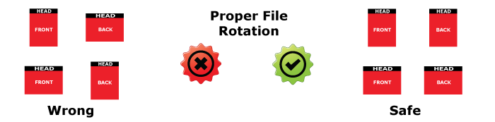 Proper File Rotation - When printing front and back, files are layed out head to head (Top to Top). Files for the front and back sides must be submitted either vertically or horizontally to insure that they get printed the way you would like them to be